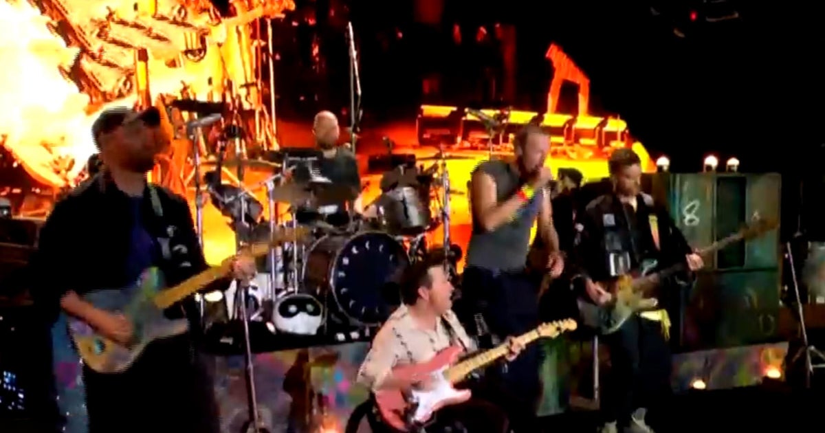 - CBS NewsMichael J. Fox plays guitar with Coldplay at Glastonbury Festival in surprise appearance